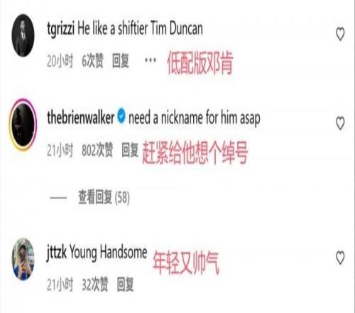 然而,美国网友和球迷和我们大不相同,他们却对杨瀚森四场季前赛的表现感到非常满意,在评论区对杨瀚森是赞不绝口,比如最近美国网友纷纷议论,有的说:开拓者首个季前赛,杨瀚森在场上无所不能,大加索尔看到这个完集笑了,还有好几个美国网友说,这是约基奇2.0,他梦还说杨瀚森年轻又帅气,大家赶紧给杨瀚森起个绰号吧。