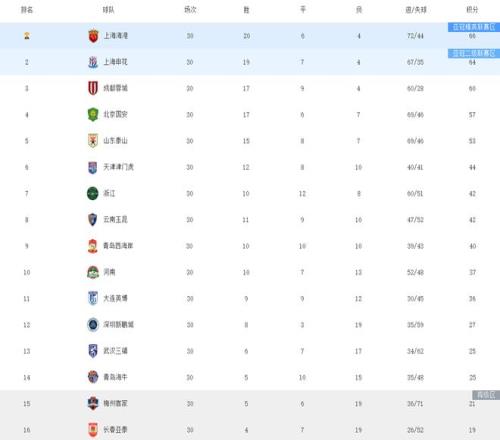 随着海港10卫冕,申花赢31,梅州15降级,中超最终积分榜出炉